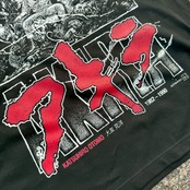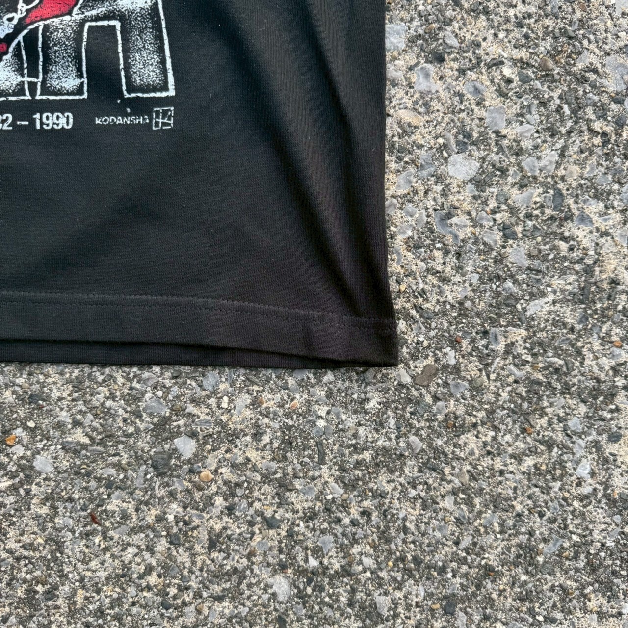 フロントにクラック加工された"アキラ"の文字に、バックには廃墟と化したネオ東京のビル群と金田のバイク。台座にすわる金田の姿は印象的でいつ見てもイケてます。退廃的でありながらも力強いエネルギーを感じる1枚です!ファンの方はもちろんAKIRA Teeを持ってない方は是非1枚ゲットしてくださいね!