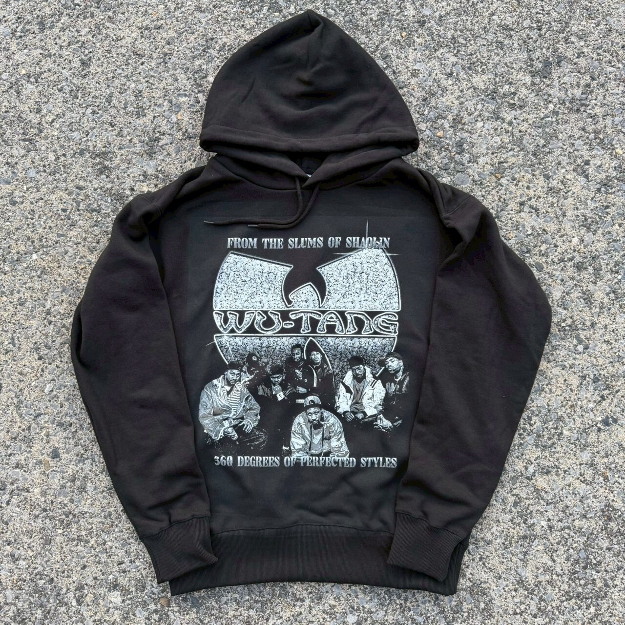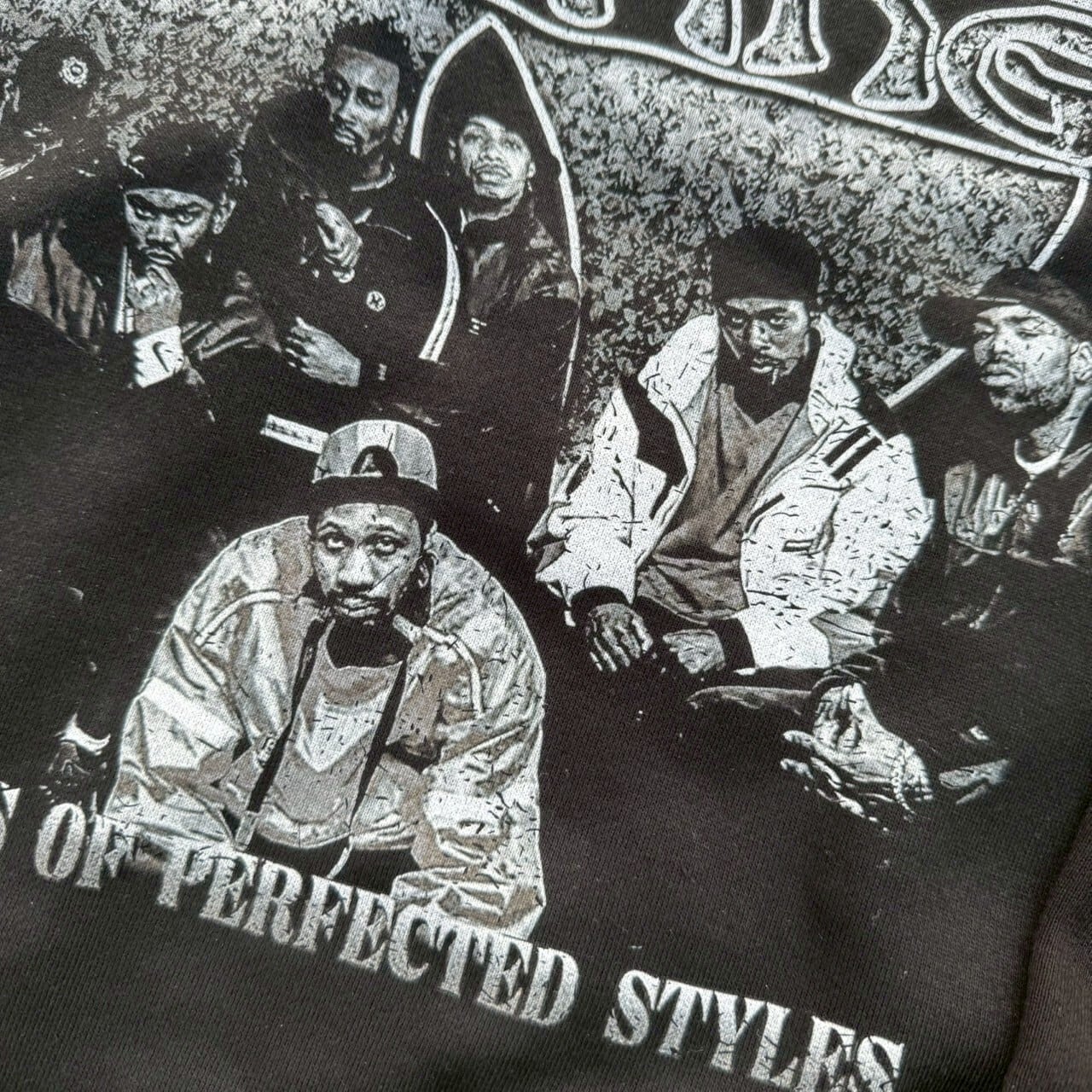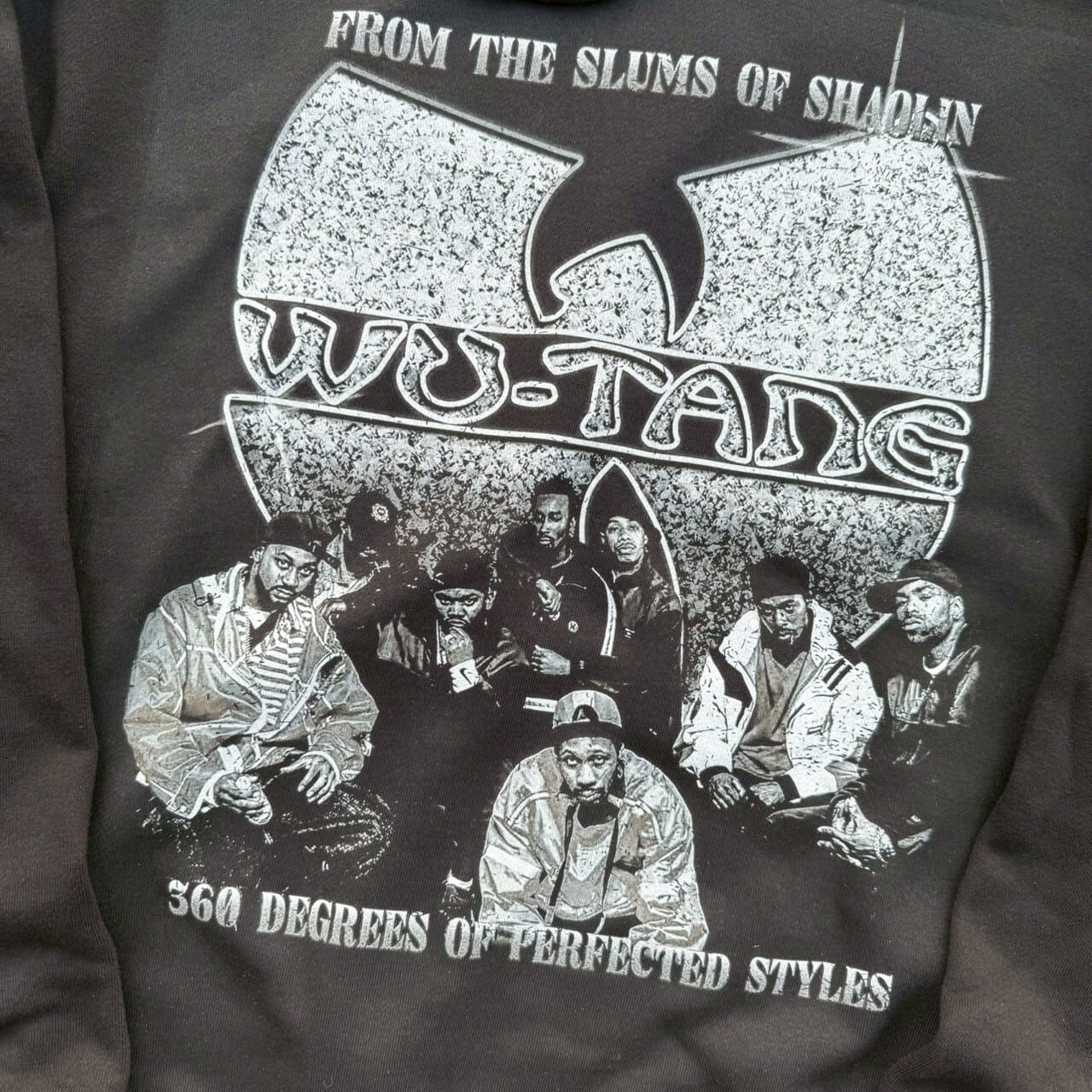 「FROM THE SLUMS OF SHAOLIN」「360 DEGREES OF PERFECTED STYLES」の文字が入り、中央には彼らの象徴である“W”ロゴ、下部にはメンバーが集結したフォトプリント。クラシックな雰囲気かつ今っぽいデザインになってます!